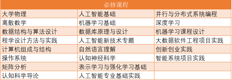 培养目标:培养富有社会责任感和创新精神、基础理论扎实、专业知识宽厚、能系统地应用人工智能的基本理论、知识、技能与方法分析和解决复杂工程问题的高级工程型专业技术人才;具备良好的团队沟通能力和一定的领导才能,具备国际化视野和跨文化的交流、竞争与合作能力;具有终身学习能力,在工作岗位上能够通过自学方式进一步丰富和加深对专业知识的学习和理解,自我提升工作能力。毕业的学生能够引领科技创新和人工智能产业发展,成为人工智能科学研究和技术工程兼顾的高素质创新人才和卓越工程人才。经过五年左右的工作实践,能独立承担重要科研项目或复杂人工智能工程项目任务,成为项目团队的核心成员或团队负责人